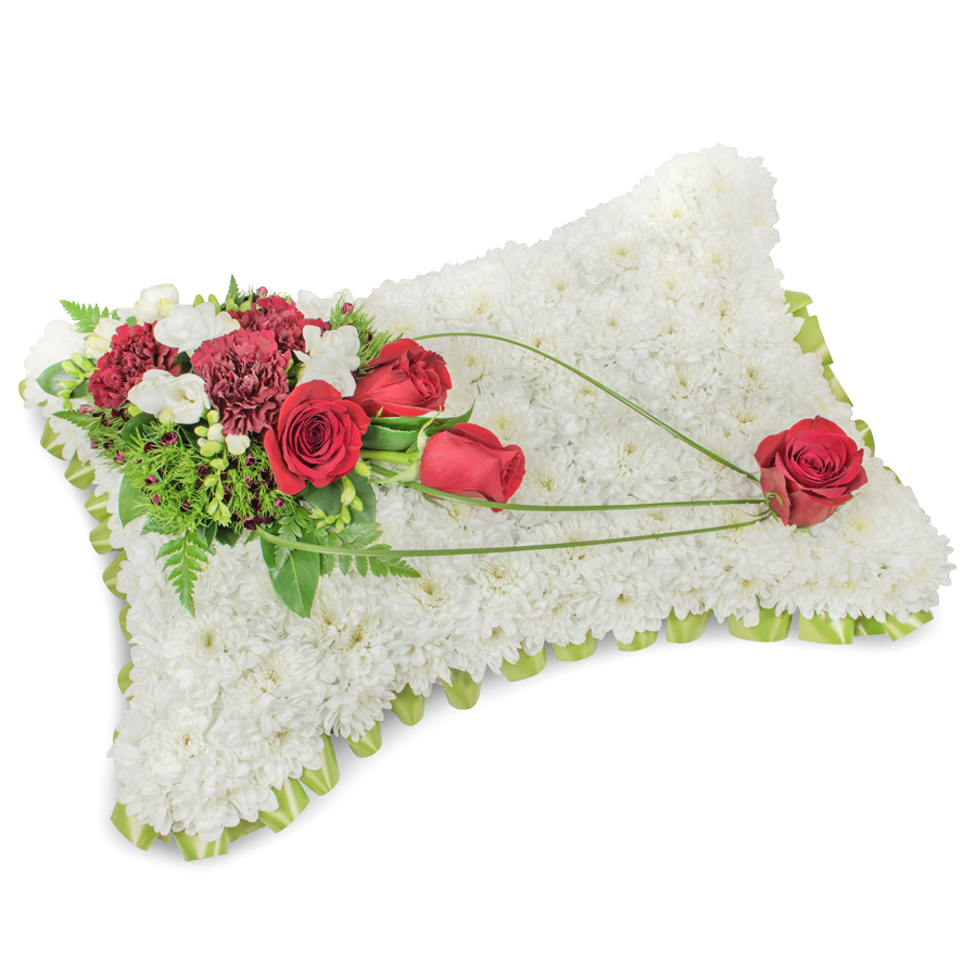 Offer condolences with sophistication through our Timeless Sympathy Floral Tribute. This arrangement artfully combines white chrysanthemums, red roses, white freesias, dark red carnations, dianthus, and bear grass into an exquisite bouquet. Each flower is chosen for its freshness and vibrant character, ensuring a display that is both meaningful and beautiful.